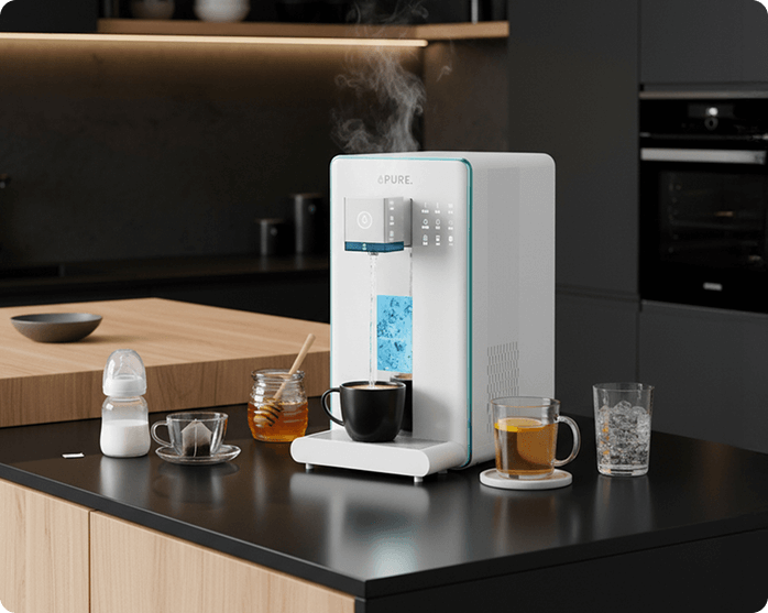Aqua Flow nudi šest preciznih nivoa temperature: hladnu, sobnu, baby, toplu, čajnu i ključalu vodu. Sve je spremno u sekundi — bez bokala, bez frižidera, bez kuvanja vode i bez čekanja. S obzirom da nema rezervoar, voda nikada ne stoji; uvek je sveža i filtrirana neposredno pre korišćenja.