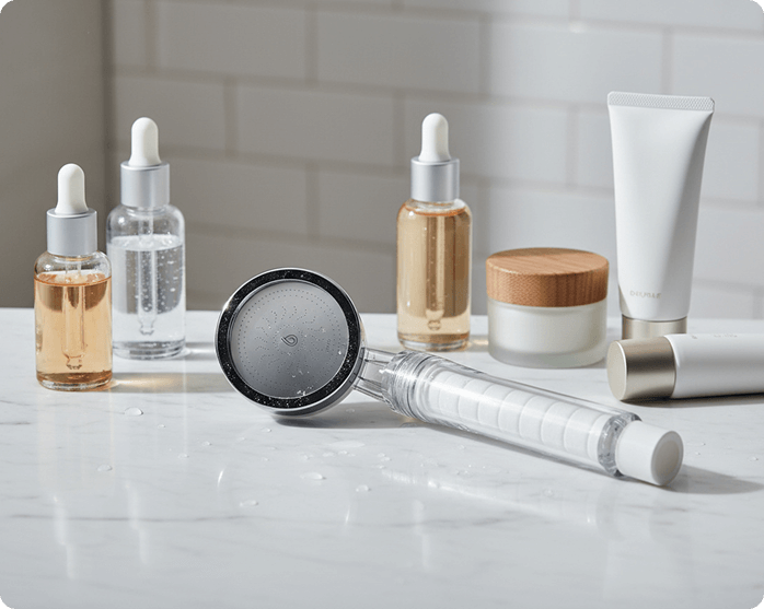Vitamin C filter uklanja hlor iz vode tokom tuširanja i štiti kožu od isušivanja, crvenila i iritacija, dok kosi vraća prirodan sjaj i mekoću.